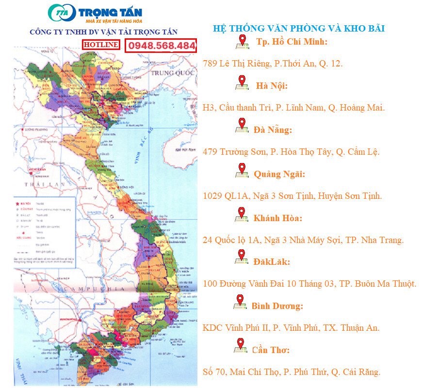 - Kho bãi rộng rãi, thoáng mát, đảm bảo hàng hóa luôn được bảo quản tốt nhất. Hệ thống kho nằm dọc các tuyến chính trên cả nước. VD như: Cần Thơ, HCM, Nha Trang, Quảng Ngãi, Đà Nẵng, Đăk Lăk, Hà Nội,… Thuận tiện cho việc giao nhận hàng hóa, lưu kho chờ vận chuyển